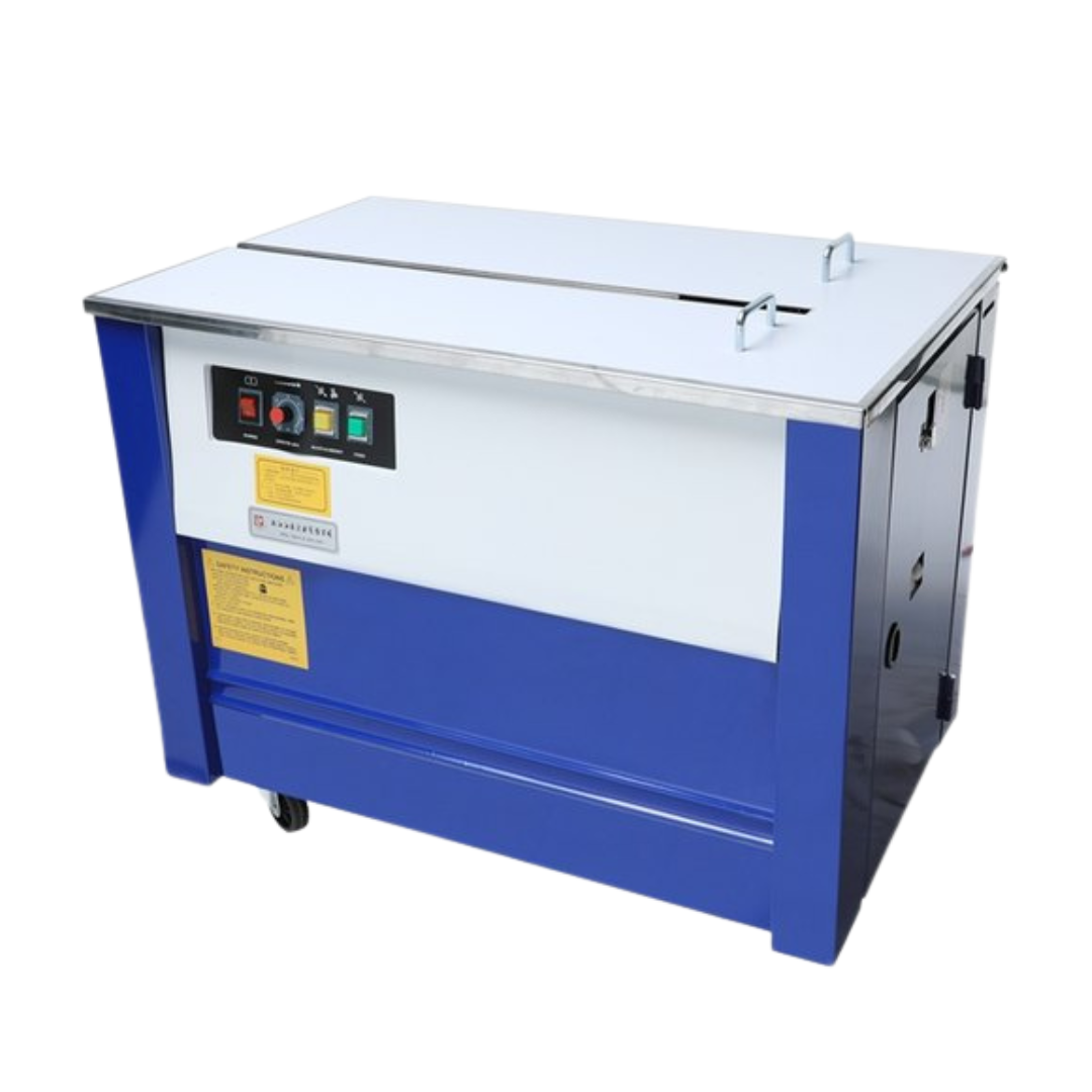 Função: Arqueamento semiautomático | Fita Compatível: Polipropileno (PP) | Fechamento: Solda térmica (sem selo metálico) | Vantagem: Agilidade e padronização na expedição